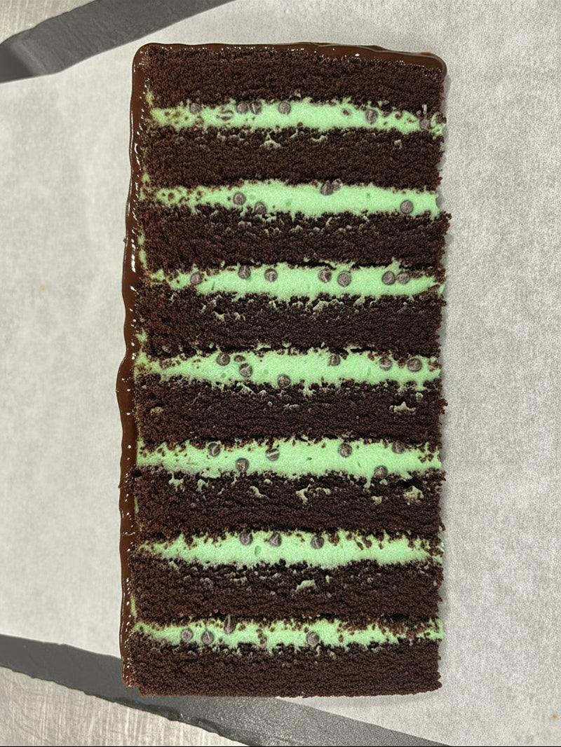 Fresh from the freezer and gone in a flash. This minty marvel layered cool sponge and chocolate ganache with shards of dark choc that snapped with every bite. Bold, bright, and a little too easy to devour.
