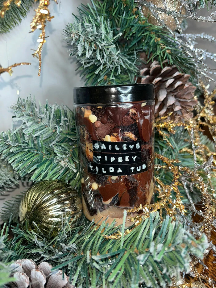Buried deep in the freezer of forgotten pleasures lies this wicked little tub – packed with chocolate sponge, Baileys-soaked ganache, dark chocolate chips and caramel fudge. She was bold, boozy, and ready-to-devour straight from the crypt (no plate required).