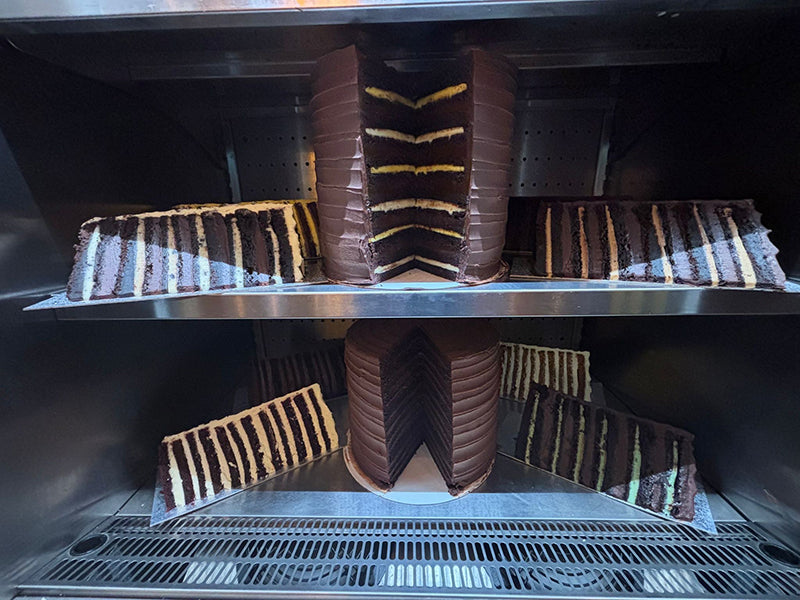 Fresh from the underworld of mint-choc madness, Peppermint Matilda was a chilly legend. Think 24 devilishly dark layers of Belgian chocolate sponge, peppermint ganache, and soft fudge – balanced with a swirl of white chocolate. Bold, refreshing, and just the right side of spooky.