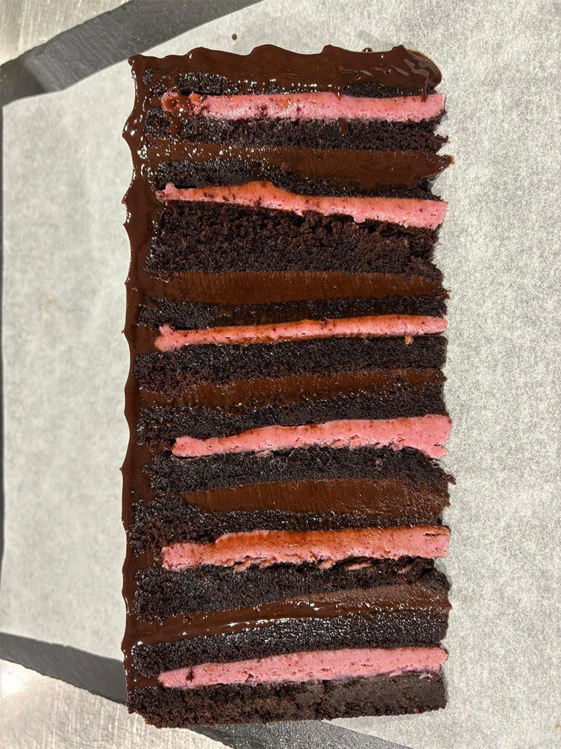 This one needed its own postcode. An epic, extra-long Matilda slice stacked with sponge and ganache galore – designed for drama and devouring. Loud, legendary, and not for the faint of heart.